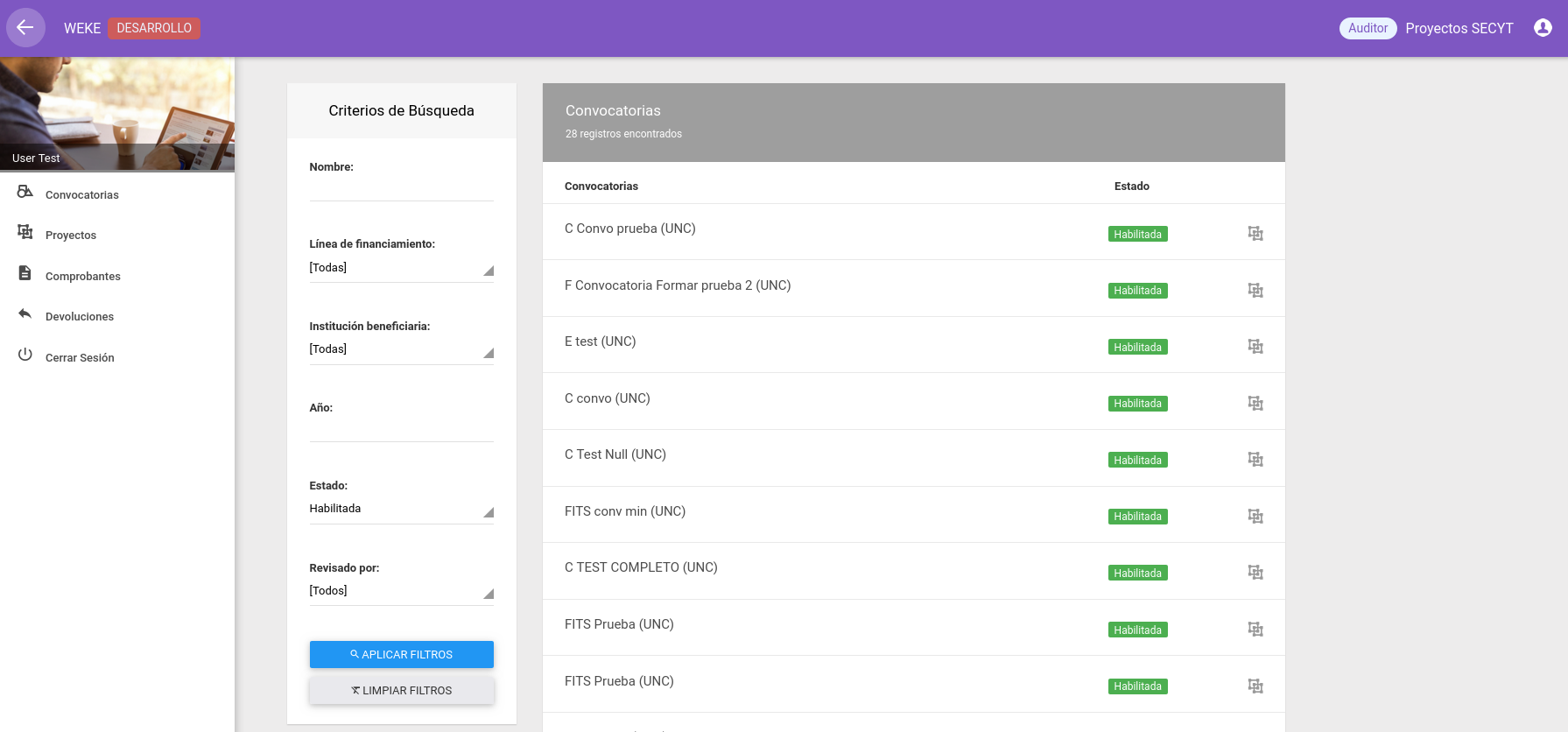 2- Visualizar convocatorias y proyectos